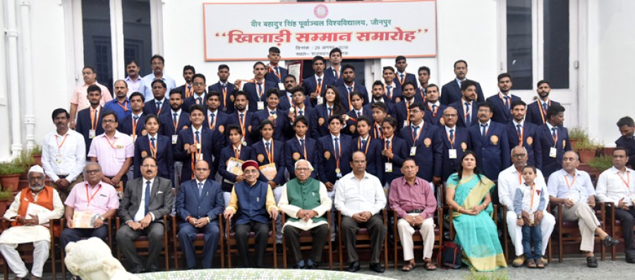 लखनऊ। राज्यपाल राम नाईक ने राजभवन गांधी सभागार में राष्ट्रीय खेल दिवस पर खिलाड़ी सम्मान समारोह में अखिल भारतीय अंतर विश्वविद्यालयीय खेल प्रतियोगिताओं में प्रथम, द्वितीय एवं तृतीय स्थान प्राप्त करने वाले खिलाड़ियों को स्वर्ण, रजत एवं कांस्य पदक से सम्मानित किया। खिलाड़ी सम्मान समारोह का आयोजन वीरबहादुर सिंह पूर्वांचल विश्वविद्यालय जौनपुर, महात्मा गांधी काशी विद्यापीठ वाराणसी एवं डॉ राम मनोहर लोहिया अवध विश्वविद्यालय फैज़ाबाद ने किया था। राज्यपाल ने हॉकी, क्रिकेट, एथलेटिक्स, तीरंदाज़ी, भारोत्तोलन, वुशू, कबड्डी, बॉक्सिंग, खो-खो आदि खेलों में पुरूष एवं महिला वर्ग में प्रतिभाग करने वाले खिलाड़ियों, प्रशिक्षकों एवं टीम प्रबंधकों को सम्मानित किया।