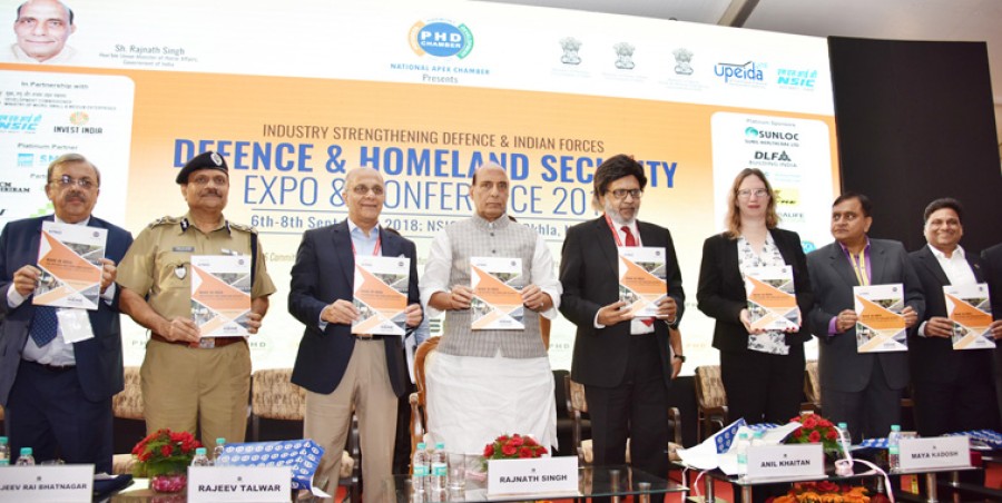 नई दिल्ली। गृहमंत्री राजनाथ सिंह ने कानून लागू करने वाली एजेंसियों का आह्वान किया है कि वे आतंकवाद और आंतरिक सुरक्षा के लिए उभरने वाली चुनौतियों का मुकाबला करने के संबंध में नवीनतम प्रौद्योगिकियां अपनाएं, ताकि उनकी क्षमता बढ़ सके। गृहमंत्री ने दिल्ली में इजराइल की राजदूत माया कदोश की मौजूदगी में तीन दिवसीय रक्षा और आंतरिक सुरक्षा प्रदर्शनी एवं सम्मेलन-2018 का उद्घाटन किया, जिसका आयोजन सूक्ष्म, लघु और मध्यम उद्यम मंत्रालय के सहयोग से पीएचडी वाणिज्य एवं उद्योग मंडल ने किया है। राजनाथ सिंह ने कहा कि सरकार हाल में घोषित नई ड्रोन नीति को जल्द ही लागू करने जा रही है, ड्रोन के इस्तेमाल के संबंध में समग्र नियम बनाए गए हैं। सम्मलेन में इजराइली राजदूत की मौजूदगी यह संकेत देती है कि भारतीय सुरक्षा रणनीति में अपनी उच्च तकनीक के साथ इजराइल भी पूरे तौरपर शामिल है।