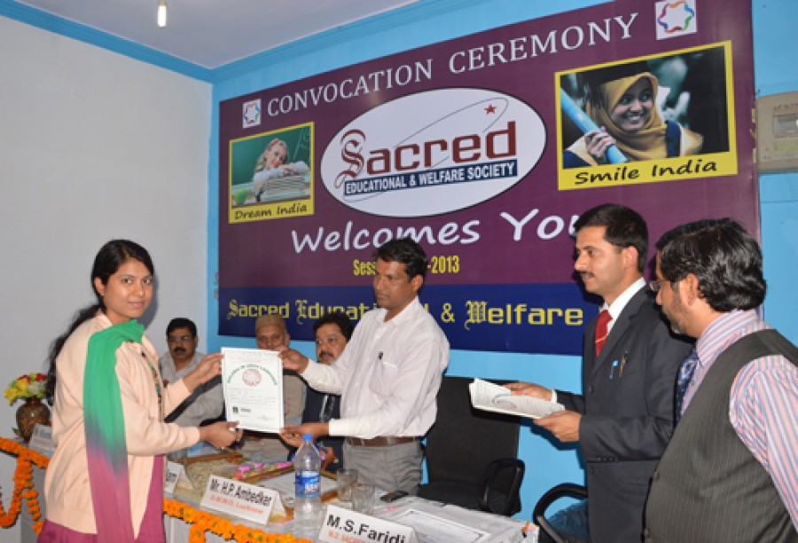 लखनऊ। सैक्रेड सोसाइटी का दीक्षांत समारोह लखनऊ में आयोजित किया गया, जिसमें उत्तर प्रदेश मदरसा बोर्ड के रजिस्ट्रार जावेद असलम मुख्य अतिथि एवं जिला अल्पसंख्यक कल्याण अधिकारी लखनऊ एचपी अंबेडकर व उत्तर प्रदेश वित्तीय एवं विकास निगम लिमिटेड के क्षेत्रीय अधिकारी खुर्शीद अहमद विशिष्ट अतिथि थे। इन्होंने86 छात्र-छात्राओं को अल्पसंख्यक विभाग से संचालित एक वर्षीय कंप्यूटर प्रशिक्षण एवं भारत सरकार के अंतर्गत एक वर्षीय उर्दू डिप्लोमा एनसीपीयूएल के प्रमाण पत्र और 80 छात्र-छात्राओं को स्टाईपेंड 750 और 1500 रूपए के चेक वितरित किए।