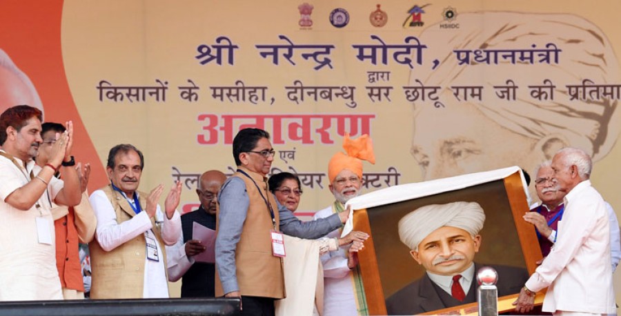 रोहतक। प्रधानमंत्री नरेंद्र मोदी ने रोहतक जिले के सांपला में दीनबंधु सर छोटू राम की प्रतिमा का अनावरण कर एक जनसभा को संबोधित किया। प्रधानमंत्री ने रेल कोच मरम्मत कारखाना सोनीपत की आधारशिला रखे जाने की पट्टिका का भी अनावरण किया। इस कारखाने का निर्माण कार्य पूरा हो जाने पर यह उत्तरी क्षेत्र में रेल डिब्बों के लिए एक महत्वपूर्ण अत्याधुनिक मरम्मत और रखरखाव सुविधा स्थल बन जाएगा। कारखाने में मॉड्यूलर एवं प्रीफैब्रिकेटेड निर्माण तकनीकों, आधुनिक मशीनरी और पर्यावरण अनुकूल खूबियों का इस्तेमाल किया जा रहा है। प्रधानमंत्री ने जनसभा में चौधरी छोटू राम की प्रतिष्ठा का उल्लेख किया और कहा कि वे उन सामाजिक सुधारकों में से एक थे, जिन्होंने भारत में इस क्षेत्र में महत्वपूर्ण योगदान दिया। उन्होंने सर छोटू राम को पीड़ितों और वंचितों के उद्धार के लिए निरंतर कार्य करने वाली शख्सियत के रूप में वर्णित किया।