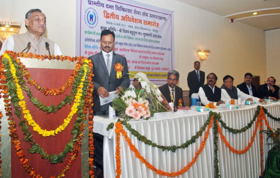 देहरादून। मुख्यमंत्री विजय बहुगुणा ने कहा है कि उत्तराखंड सरकार प्रदेश में चिकित्सा सुविधाओं के विकास के लिए हर संभव प्रयास कर रही है। पर्वतीय क्षेत्रों में चिकित्सकों की कमी को दूर उनकी सेवा शर्तों को आकर्षक बनाया गया है। प्रांतीय दंत चिकित्सा सेवा संघ के द्वितीय अधिवेशन में मुख्यमंत्री ने कहा कि दंत चिकित्सक स्वास्थ्य व्यवस्था के महत्वपूर्ण अंग हैं, उन्हें अपने प्रोफेशन को मिशन की तरह लेना चाहिए, जीवन में कभी भी निराशा नहीं आने दें, हमेशा सकारात्मक दृष्टिकोण रखते हुए अपने दायित्वों का निर्वहन करें। मुख्यमंत्री ने कहा कि राज्य में 70 फीसदी व्यय नॉन प्लान में किया जा रहा है। सरकार दंत चिकित्सकों की मांगों का परीक्षण करवाकर समुचित मांगों को पूरा करने का प्रयास करेगी। इस अवसर पर विधायक राजकुमार, विवेकानंद खंडूड़ी, संघ के अध्यक्ष डॉ जेडीएस राणा, महासचिव डॉ सुनील अग्रवाल, डॉ बीसी पाठक, डॉ पीसी रमोला, डॉ डीपी जोशी आदि उपस्थित थे।