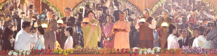 मुख्यमंत्री योगी आदित्यनाथ ने कहा कि दक्षिण कोरिया की प्रथम महिला किमजोंग-सुक के यहां आने से हम सभी अपने अतीत से जुड़ रहे हैं। उन्होंने कहा कि अयोध्या की पहचान अयोध्या के ही रूपमें होना इस कार्यक्रम का उद्देश्य है, वैसे भी दीपावली का आयोजन अयोध्या से ही जाना जाता है। मुख्यमंत्री योगी आदित्यनाथ ने कहा कि रामायण सर्किट को भी विकसित करने का कार्य किया जा रहा है, जनकपुर से अयोध्या तक की बस सेवा की शुरुआत कर ही दी गई है। उन्होंने कहा कि राम-जानकी के विवाह के अवसर पर इस बार वे स्वयं जनकपुर जाएंगे। उन्होंने कहा कि रामराज्य की स्थापना की नींव रखे जाने की दिशा में कार्रवाई प्रारंभ की जा चुकी है। उन्होंने केंद्र सरकार के साढ़े चार वर्ष के कार्यकाल के एवं उत्तर प्रदेश सरकार के कार्यों एवं देश के करोड़ों गरीबों के कल्याण कार्यक्रमों का उल्लेख किया। मुख्यमंत्री ने कहा कि अयोध्या में विकास के कार्य बहुत तेजी से हो रहे हैं। सड़कों की बेहतरी, घाटों का सौंदर्यीकरण हुआ है और बिजली के नंगे तारों से अयोध्या को मुक्ति मिली है।