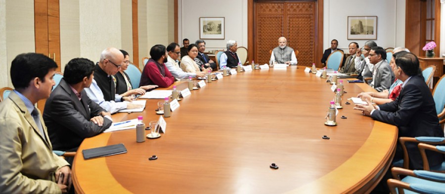 नई दिल्ली। प्रधानमंत्री नरेंद्र मोदी ने आज दिल्ली में अपनी विज्ञान प्रौद्योगिकी और नवाचार सलाहकार परिषद के सदस्यों के साथ बातचीत की। यह परिषद विज्ञान प्रौद्योगिकी और नवाचार से संबंधित सभी विषयों पर प्रधानमंत्री को सलाह देती है और इन विषयों पर प्रधानमंत्री के विजन के क्रियांवयन की निगरानी करती है। परिषद के सदस्यों ने विज्ञान और प्रौद्योगिकी के महत्वपूर्ण क्षेत्रों में नवाचार पालन और अनुसंधान के लिए उठाए जा रहे कदमों की जानकारी प्रधानमंत्री को दी।