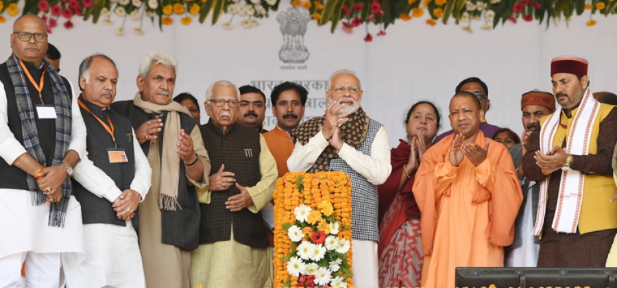 प्रधानमंत्री नरेंद्र मोदी ने जोर देकर कहा कि केवल तात्कालिक राजनीतिक लाभ के लिए उठाए गए कदमों से देश की समस्याओं के समाधान में मदद नहीं मिलेगी। उन्होंने कहा कि केंद्र सरकार ने लागत से डेढ़ गुनी कीमत के आधार पर 22 फसलों की एमएसपी निर्धारित की है। उन्होंने कृषि क्षेत्र के लिए उठाए गए कई अन्य कदमों का जिक्र किया। कनेक्टिविटी संबंधित प्रगति की चर्चा करते हुए प्रधानमंत्री ने कहा कि पूर्वांचल एक्सप्रेस के लिए कार्य तेज गति से चल रहा है, तारीघाट-गाजीपुर-मऊ पुल पर कार्य प्रगति पर है। उन्होंने कहा कि वाराणसी एवं कोलकाता के बीच में हाल में खोले गए जलमार्ग से भी गाजीपुर को लाभ पहुंचेगा। उन्होंने कहा कि ये परियोजनाएं क्षेत्र में व्यापार एवं वाणिज्य को बढ़ावा देंगी। इस अवसर पर राज्यपाल राम नाईक, मुख्यमंत्री योगी आदित्यनाथ, संचार और रेलवे राज्यमंत्री मनोज सिन्हा, विधि एवं न्याय मंत्री ब्रजेश पाठक, भाजपा के प्रदेश अध्यक्ष डॉ महेंद्रनाथ पांडेय, चिकित्सा शिक्षामंत्री आशुतोष टंडन, राज्यमंत्री उपेंद्र तिवारी आदि मौजूद थे।