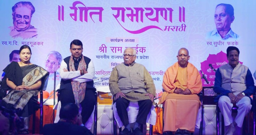 मुख्यमंत्री योगी आदित्यनाथ भी कार्यक्रम में मौजूद थे। उन्होंने कहा कि जिसने भी, जिस रूप में भी भगवान श्रीराम का नाम जपा उसका उद्धार हुआ है। मुख्यमंत्री ने कहा कि रामचरितमानस की रचना काशी में हुई, तुलसीदास इसे संस्कृत में लिखना चाहते थे, लेकिन हनुमानजी की प्रेरणा से उन्होंने इसे लोकभाषा अवधी में लिखने का कार्य किया और श्रीराम की गाथा को देश-दुनिया में पहुंचाने का श्रेय महर्षि बाल्मीकि को जाता है। उन्होंने कहा कि यदि व्यक्ति सदाचार और नैतिक मूल्यों से बंधा रहे तो अराजकता एवं अव्यवस्था पैदा हो ही नहीं सकती। उन्होंने कहा कि ‘गीत रामायण’ ऊंचाइयों को प्राप्त कर रहा है, महर्षि वाल्मीकि ने वैदिक परम्परा को लौकिक रूप दिया, लोकभाषा का सशक्त माध्यम रामायण है। उन्होंने कहा कि महाराष्ट्र की परम्परा भक्ति की भी है और शक्ति की भी है और जब कभी भी देश में संक्रमणकाल आया है तो उत्तर प्रदेश को महाराष्ट्र से एक नई दिशा मिली है। उन्होंने कहा कि प्रधानमंत्री नरेंद्र मोदी के ‘एक भारत, श्रेष्ठ भारत’ की परिकल्पना को आगे बढ़ाया जा रहा है।