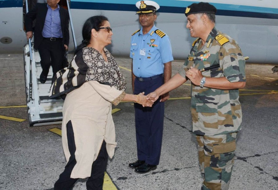 पोर्ट ब्लेयर। रक्षामंत्री निर्मला सीतारमण दो दिवसीय दौरे पर अंडमान एवं निकोबार द्वीप समूह की राजधानी पोर्ट ब्लेयर पहुंचीं, जहां उनकी अगवानी आईएनएस उत्क्रोष पर अंडमान एवं निकोबार कमान के कमांडर इन चीफ वाइस एडमिरल बिमल वर्मा ने की। रक्षामंत्री का अंडमान एवं निकोबार कमान का यह दूसरा दौरा है। उन्होंने यहां परिचालन से जुड़ी तैयारियों के साथ-साथ कमान की दूरस्थ इकाइयों के ढांचागत विकास से जुड़े कार्यों की समीक्षा की। रक्षामंत्री निर्मला सीतारमण ने ग्रेट निकोबार द्वीप में कैम्पबेल खाड़ी से कुछ दूरी पर कमान के सभी रक्षाबलों के सहभागिता वाले परिचालन अभ्यास को देखा और सराहना की। निर्मला सीतारमण ने सैनिकों के साथ विभिन्न विषयों पर बातचीत की। उन्होंने ब्रिचगंज मिलिट्री स्टेशन पर मैरेड एकोमोडेशन प्रोजेक्ट के दूसरे चरण का उद्घाटन भी किया, जिसमें एएनसी के सैनिकों के लिए 868 आवासीय इकाइयां होंगी।