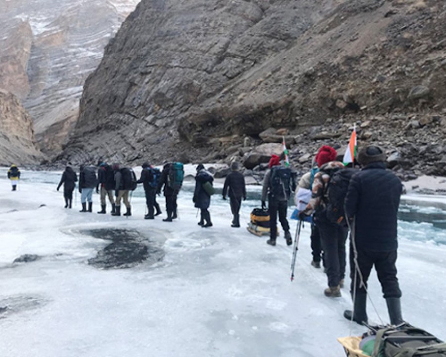 लद्दाख में जांस्कर नदी पर चुनौतीपूर्ण रास्ते को किया पार