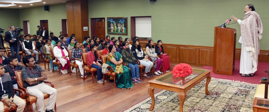 नई दिल्ली। उपराष्ट्रपति एम वेंकैया नायडू ने छात्रों में तर्कसंगत सोच विकसित करने और उन्हें जीवन की चुनौतियों का स्वत: सामना करने में सक्षम बनाने के लिए शिक्षा प्रणाली को अनुकूल बनाने का आह्वान किया है। उन्होंने कहा कि एक ऐसी शिक्षा जो दिमाग, हृदय, शरीर और उत्साह को संतुलित करे, उसे ही सच्चे अर्थों में संपूर्ण शिक्षा कही जा सकती है। उन्होंने कहा कि बच्चों को ज्ञान अर्जित और समाहित करने में समर्थ होने के साथ-साथ जीवन की वास्तविक स्थिति में ज्ञान के इस्तेमाल में भी सक्षम होना चाहिए। उपराष्ट्रपति ने ये उद्गार आज तमिलनाडु के केंद्रीय विद्यालय और अन्य विद्यालयों के छात्रों से उपराष्ट्रपति भवन नई दिल्ली में बातचीत करते हुए व्यक्त किए।