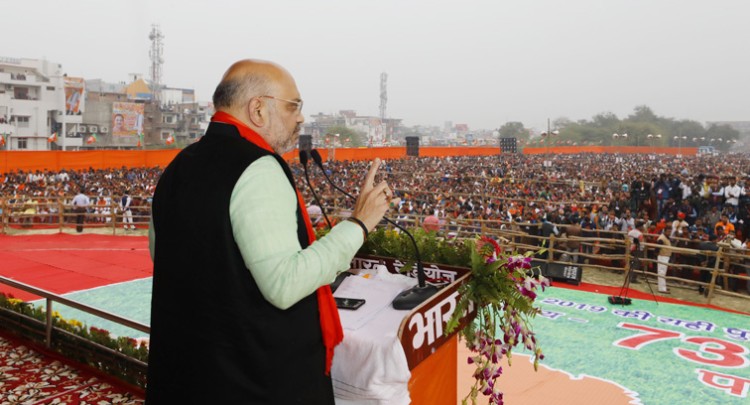 भाजपा अध्यक्ष ने कहा कि कांग्रेस ने मंदिर से जुड़े मुकद्मे में बाधा डालने का काम किया। उन्होंने इस मामले में योगी सरकार की सराहना की और कहा कि उन्होंने छह महीने में ही मुकद्मे से जुड़े दस्तावेज़ का हिंदी में अनुवाद कराकर मुकद्मे में तेजी लाने का काम किया है। अमित शाह ने प्रधानमंत्री नरेंद्र मोदी के बजट की प्रशंसा करते हुए कहा कि मोदी सरकार ने तीन लाख करोड़ रुपए से भी ज्यादा का अबतक का सबसे बड़ा रक्षा बजट पेश किया है, हर छोटे और सीमांत किसानों के लिए 6,000 रुपए की नकद राशि हर वर्ष देने की व्यवस्था की गई है, मध्यम वर्ग के लिए 5 लाख रुपए तक इनकम टैक्स की छूट दी गई, 40 लाख रुपए तक का कारोबार करने वाले व्यापारियों को जीएसटी से बाहर किया गया है, राज्य में मछुआरों की संख्या देश में सबसे ज्यादा है, उनके लिए मछुआरा विभाग बनाया गया है और मुसहर जाति के लोगों को अच्छा जीवन देने का अधिकार देने का काम भाजपा ने किया।