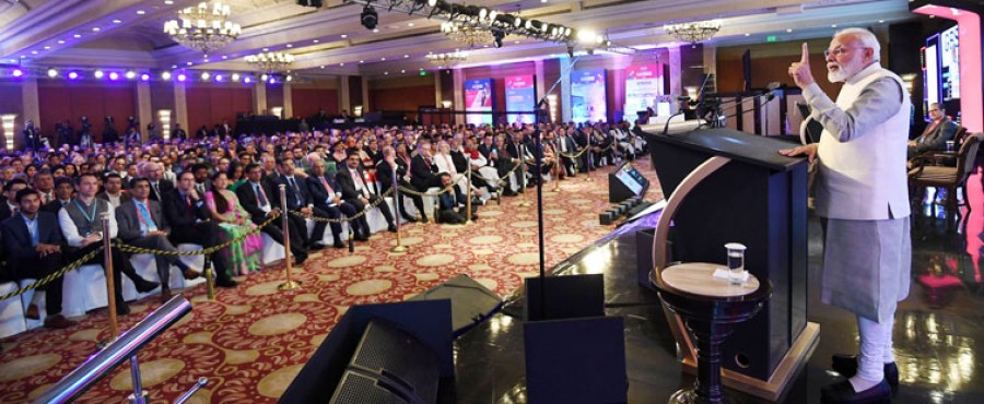 प्रधानमंत्री ने कहा कि इन 4 वर्ष के दौरान देश में प्राप्त विदेशी प्रत्यक्ष निवेश की राशि लगभग उतनी ही है, जितनी 2014 से पहले के सात वर्ष के दौरान प्राप्त हुई थी, इसे अर्जित करने के लिए भारत को रूपांतरण हेतु सुधारों की आवश्यकता थी। प्रधानमंत्री ने कहा कि दिवालियापन कोड, जीएसटी, रियल एस्टेट अधिनियम के जरिए दशकों के उच्चतर विकास के लिए एक ठोस बुनियाद रख दी गई है। प्रधानमंत्री ने कहा कि भारत 130 करोड़ आकांक्षाओं का देश है और विकास तथा प्रगति के लिए कभी भी एक विजन नहीं हो सकता। उन्होंने कहा कि नवीन भारत का हमारा विजन आर्थिक रूपरेखा, जाति, वर्ण, भाषा एवं धर्म से परे, समाज के सभी वर्गों की आवश्यकताओं का ध्यान रखता है। नरेंद्र मोदी ने कहा कि नवीन भारत के हमारे विजन में भविष्य की चुनौतियों पर ध्यान देना और अतीत की समस्याओं का समाधान करना शामिल है। इस संदर्भ में उन्होंने उदाहरण देते हुए कहा कि भारत ने अपनी सबसे तेजगति से चलने वाली रेलगाड़ी का निर्माण किया है, इसने सभी मानवरहित रेलवे क्रांसिंगों को भी समाप्त कर दिया है।
