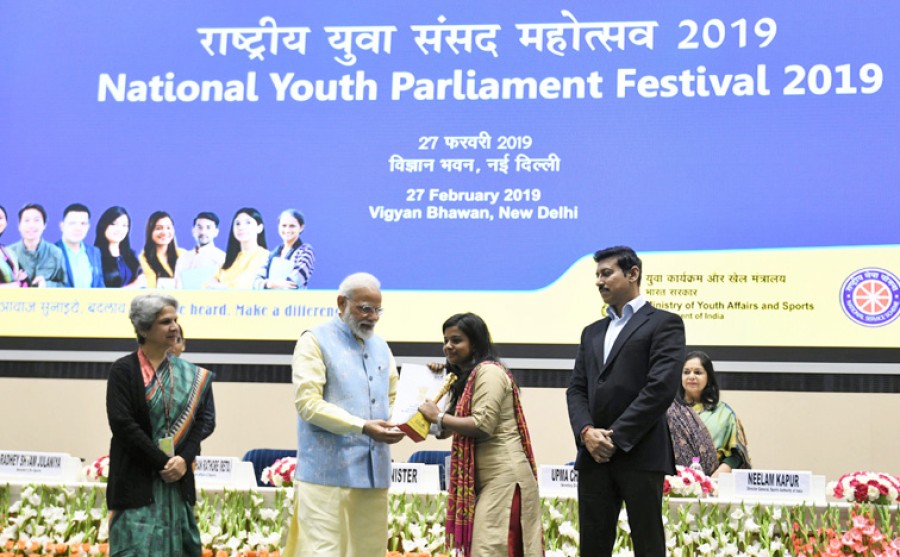 राष्ट्रीय युवा संसद महोत्सव 2019 की थीम ‘नए भारत की आवाज़ बनें एवं समाधान खोजें और नीति में योगदान दें’ थी, महोत्सव का आयोजन युवा मामले एवं खेल मंत्रालय के तत्वावधान में नेशनल सर्विस स्कीम और नेहरू युवा केंद्र संगठन ने संयुक्त रूपसे किया था। प्रधानमंत्री ने इस दौरान खेलो इंडिया एप भी लांच किया, जिसे युवा मामले एवं खेल मंत्रालय के अधीनस्थ भारतीय खेल प्राधिकरण ने विकसित किया है। एप का उपयोग देश में विभिन्न खेल स्थलों, उनकी उपलब्धता, खेल के नियमों और किसी भी व्यक्ति की फिटनेस का पता लगाने में किया जा सकता है। इस अवसर पर युवा मामले एवं खेल और सूचना व प्रसारण राज्यमंत्री कर्नल राज्यवर्धन राठौर भी उपस्थित थे। उन्होंने कहा कि प्रधानमंत्री ने युवा संसद का आयोजन करने के लिए प्रेरित किया, जिसने युवाओं को अपने विचार पेश करने के लिए एक उपर्युक्त प्लेटफॉर्म उपलब्ध कराया। उन्होंने कहा कि प्रधानमंत्री ने देश में खेलों को बढ़ावा देने के लिए पूर्ण सहयोग प्रदान किया है।