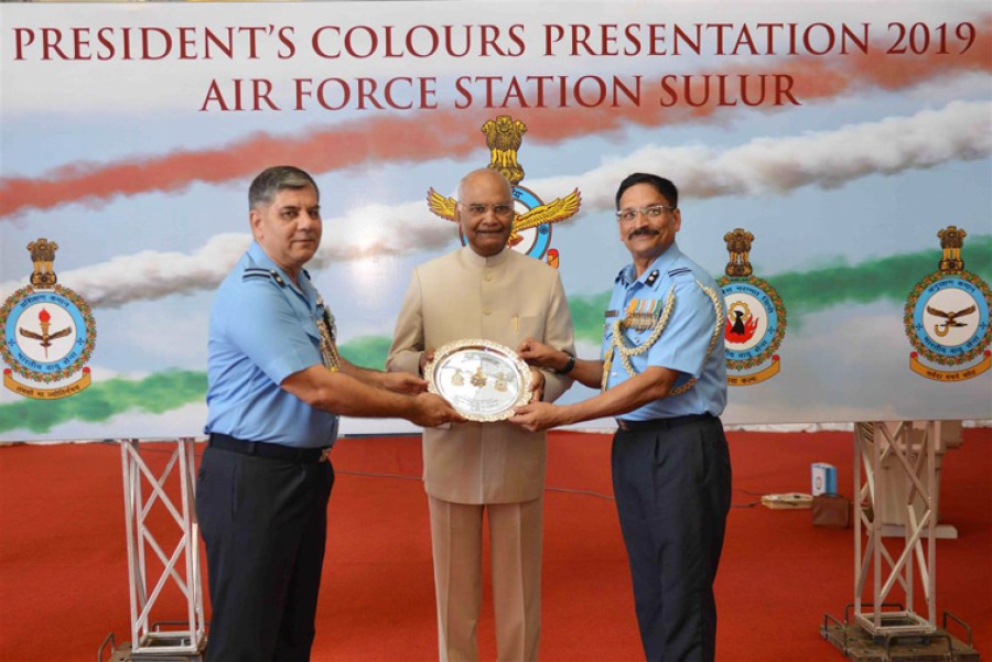 कोयंबटूर। राष्ट्रपति रामनाथ कोविंद ने आज वायुसेना केंद्र हकीमपेट एवं तमिलनाडु के कोयंबटूर के सूलूर में5 बेस रिपेयर डिपो को कलर्स प्रदान किए। राष्ट्रपति ने इस अवसर पर कहा कि दुनिया के देशों के बीच भारत का बढ़ता रुतबा हमारे सशस्त्र बलों की ताकत और क्षमता के अनुरूप है। उन्होंने कहा कि भारत शांति के प्रति दृढ़तापूर्वक प्रतिबद्ध बना हुआ है, लेकिन आवश्यकता पड़ने पर हम राष्ट्र की संप्रभुता रक्षा करने में अपनी पूरी ताकत का उपयोग करेंगे। राष्ट्रपति रामनाथ कोविंद ने वायुसेना की बहादुरी और पेशेगत दक्षता की सराहना की। राष्ट्रपति ने कहा कि भारतीय वायुसेना आसमानी क्षेत्र की सुरक्षा करने के अतिरिक्त मानवीय सहायता और आपदा राहत मुहिमों में भी आगे रही है। उन्होंने कहा कि हमारे बहादुर वायु योद्धाओं का लचीलापन और दृढ़ता राष्ट्र के लिए गर्व का एक बड़ा स्रोत है।