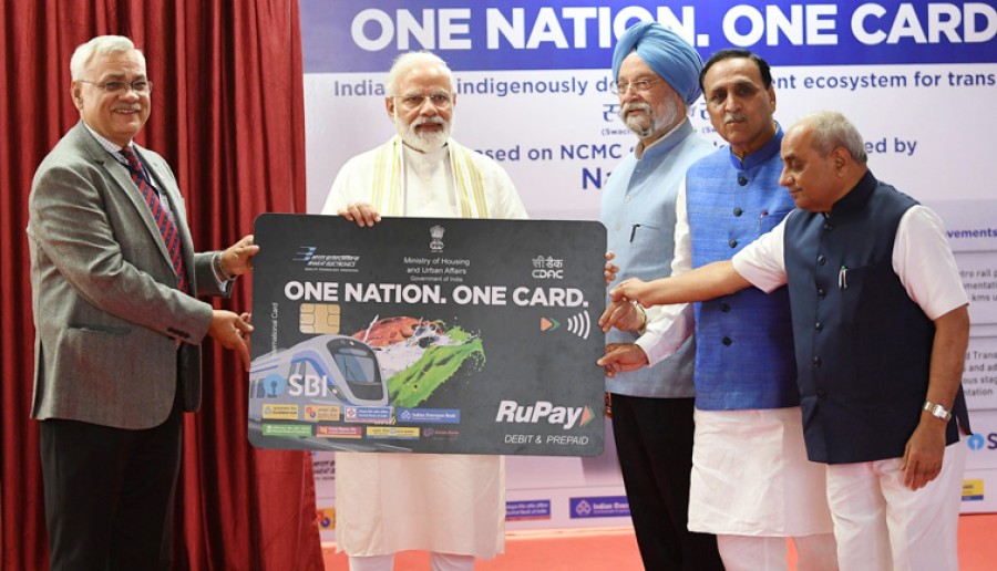 अहमदाबाद। प्रधानमंत्री नरेंद्र मोदी ने अहमदाबाद में आयोजित एक कार्यक्रम में परिवहन गतिशीलता के लिए एक राष्ट्र एक कार्ड का शुभारंभ किया। यह स्वदेशी स्वचालित किराया संग्रह प्रणाली एक राष्ट्र एक कार्ड मॉडल पर आधारित है। नेशनल कॉमन मोबिलिटी कार्ड यानी एनसीएमसी देश में अपने किस्म का ऐसा पहला कार्ड है। परिवहन के लिए पहला स्वदेशी विकसित भुगतान प्रणाली में शामिल एनसीएमसी कार्ड, स्वीकार अर्थात स्वचालित किराया-स्वचालित किराया संग्रह प्रणाली और स्वागत यानी स्वचालित गेट एनसीएमसी मानकों पर आधारित है। ये बैंक द्वारा जारी किए गए डेबिट, क्रेडिट, प्रीपेड कार्ड हैं। ग्राहक मेट्रो, बस, उपनगरीय रेलवे, टॉल, पार्किंग, स्मार्ट सिटी और खुदरा खरीदारी सहित सभी क्षेत्रों में भुगतान के लिए इस एकल कार्ड का उपयोग कर सकता है। इस कार्ड में संग्रहित मूल्यराशि सभी हितधारकों के लिए न्यूनतम वित्तीय जोखिम के साथ-साथ सभी प्रकार की यात्रा जरूरतों में ऑफलाइन लेनदेन में मदद करती है।