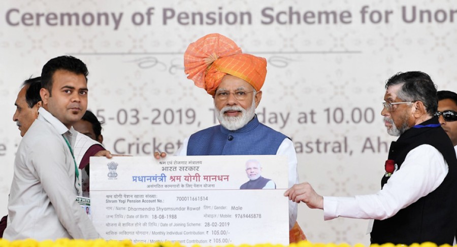 प्रधानमंत्री नरेंद्र मोदी ने कहा कि केंद्र सरकार की विभिन्न योजनाएं असंगठित क्षेत्र के श्रमिकों को ध्यान में रखकर तैयार की गई हैं, जैसे- आयुष्मान भारत, प्रधानमंत्री जीवन ज्योति बीमा योजना, प्रधानमंत्री सुरक्षा बीमा योजना, पीएम आवास योजना, उज्ज्वला योजना, सौभाग्य योजना और स्वच्छ भारत मिशन आदि। उन्होंने देश में महिलाओं और बालिकाओं के सशक्तिकरण के लिए सरकार की पहलों के बारे में भी बताया। प्रधानमंत्री ने कहा कि असंगठित क्षेत्र के श्रमिकों को वृद्धावस्था के दौरान सामाजिक सुरक्षा प्रदान करने के लिए कई योजनाएं लागू कि गई हैं जैसे-स्वास्थ्य कवरेज के लिए आयुष्मान भारत, जीवन बीमा के लिए प्रधानमंत्री जीवन ज्योति बीमा योजना और शारीरिक अक्षमता के लिए प्रधानमंत्री सुरक्षा बीमा योजना। उन्होंने कहा कि उनकी सरकार बिचौलियों और भ्रष्टाचार को समाप्त करने के लिए प्रतिबद्ध है।