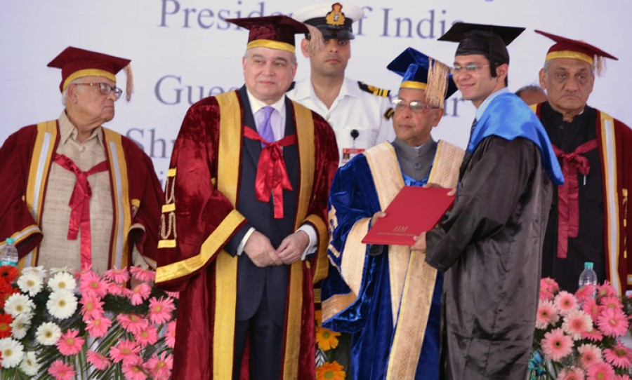 राष्ट्रपति ने भारतीय उद्योग को वैश्विक औद्योगिक विकास के मुकाबले उत्कृष्ट बनाने के लिए रणनीति बनाने पर जोर दिया। उन्होंने कहा कि इसके लिए विशेष तौर से प्रशिक्षित मानव शक्ति की आवश्यकता है, देश के व्यापार की बढ़ोत्तरी के लिए प्रशिक्षित मानव शक्ति और प्रबंधन के क्षेत्र में उत्कृष्ट श्रेणी के व्यवसायिक लोगों की आवश्यकता है, इस समय देश में विशेष तौर पर ऐसे प्रशिक्षित व्यवसायिकों की कमी है। उन्होंने उदाहरण देते हुए कहा कि प्रबंधन और वाणिज्य क्षेत्रों में पढ़ने वाले छात्रों की संख्या 2006-07 के 23 लाख की संख्या के बढ़कर 2011-12 में 34 लाख पहुंच गयी है, इन क्षेत्रों में स्नातक और स्नातकोत्तर छात्रों की भविष्य में और अधिक मांग होगी। राष्ट्रपति ने इस बात पर अफसोस किया कि विश्व के 200 उत्कृष्ट विश्वविद्यालयों में भारत का कोई भी विश्वविद्यालय अथवा संस्थान शामिल नहीं है, इसके लिए हमारे विश्वविद्यालयों को कड़ी मेहनत करने की आवश्यकता है, ताकि उन्हें भी इस सूची में स्थान मिल सके। राष्ट्रपति ने कहा कि देश में शोध को बढ़ावा देने की आवश्यकता है, इसके लिए शोध के क्षेत्र में विश्व के प्रतिष्ठित संस्थानों के साथ सम्मिलित शोध को बढ़ावा दिया जाना चाहिए, इससे देश के उद्योगों को खासा फायदा पहुंचेगा। उन्होंने आज यहां प्रथम बैच के पास आउट 37 विद्यार्थियों को डिग्रियां प्रदान कीं। इनमें से एक छात्र अंकित गर्ग को गोल्ड मैडल, पुलकित तलुजा को रजत व मयंक मिश्रा को चतुरमुखी प्रदर्शन हेतु पदक प्रदान किए गए।