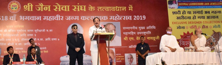 उपराष्ट्रपति वेंकैया नायडू ने कहा कि जैन धर्म ने भारत के आध्यात्मिक विकास में बहुत योगदान दिया है और सत्य, अहिंसा एवं शांति के आदर्शों के प्रति भारत की अटूट प्रतिबद्धता को मजबूत करने में मदद की है। उपराष्ट्रपति ने भारत की गौरवशाली प्राचीन सभ्यता का उल्लेख करते हुए कहा कि भारत कई प्रकार से दुनिया में अग्रणी देश था। उन्होंने कहा कि भारत दुनिया की सांस्कृतिक राजधानी था, जो प्रेम, शांति, सहिष्णुता और भाईचारे के उच्चतम मानवीय मूल्यों, गहन ज्ञान, ज्ञान का स्रोत और दुनिया के लिए विश्वगुरु था। उन्होंने कहा कि हमें दुनिया में नेतृत्व का अपना सही स्थान फिर से प्राप्त करना है। वेंकैया नायडू ने कहा कि हम एक अराजक समय में रह रहे हैं।उन्होंने यह भी कहा कि दुनिया एक तरफ आतंकवाद, उग्रवाद और गृहयुद्धों जैसे कई रूपों में हिंसात्मक लड़ाई लड़ रही है और दूसरी ओर संसाधनों के अनियंत्रित दोहन, असंतुलित और निम्न ढंग से बनाई गई विकास योजनाओं के दुष्परिणामों से जूझ रही है। उन्होंने सावधान किया कि हमें या तो अपने जीने के तरीके को बदलना होगा या अपने कार्यों के दुष्परिणामों का सामना करने के लिए तैयार रहना होगा।