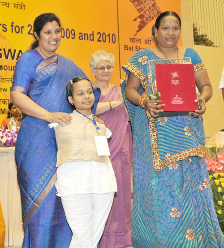 नई दिल्ली। मानव संसाधन विकास राज्य मंत्री डी पुरंदेश्वरी ने राजधानी के विज्ञान भवन में वर्ष 2008, 2009 और 2010 के बालश्री सम्मान से कलाकारों को सम्मानित किया। कुल 147 बाल कलाकार सम्मानित किए गए, जिनमें से वर्ष 2008 के लिए 52 कलाकारों को सम्मान से नवाजा गया। इन 52 कलाकारों में से 14 को सृजनात्मक प्रदर्शन (एक विशेष रूप से सक्षम बालक सहित), 13 को सृजनात्मक कला (दो विशेष रूप से सक्षम बालकों सहित), एक विशेष बाल वैज्ञानिक सहित 13 को सृजनात्मक वैज्ञानिक नवप्रवर्तन और 12 को सृजनात्मक लेखन के लिए सम्मानित किया गया। वर्ष 2009 के लिए 56 बाल सम्मानितों में से 15 को सृजनात्मक प्रदर्शन (एक विशेष रूप से सक्षम बालक सहित), 15 को सृजनात्मक कला, 15 को सृजनात्मक वैज्ञानिक नवप्रवर्तन और 11 को सृजनात्मक लेखन के लिए सम्मानित किया गया। वर्ष 2010 के लिए 39 बाल सम्मानितों में से 4 विशेष सहित 12 को सृजनात्मक प्रदर्शन (चार विशेष रूप से सक्षम बालक), 12 को सृजनात्मक कला, 8 को सृजनात्मक वैज्ञानिक नवप्रवर्तन और 7 को सृजनात्मक लेखन के लिए बालश्री सम्मान से नवाजा गया। सचिव (एसईएंडएल) और राष्ट्रीय बाल भवन की अध्यक्ष अंशु वैश्य ने इस सम्मान समारोह की अध्यक्षता की।