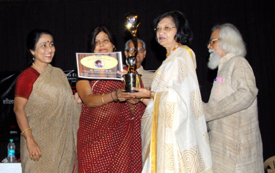 नई दिल्ली। राग विराग की ओर से त्रिवेणी सभागार में शीला सिद्धांतकर स्मृति पुरस्कार कवि मंजरी दुबे को दिया गया। ये पुरस्कार मंजरी को कथाकार मृदुला गर्ग ने अपने हाथों से दिया। कार्यक्रम की अध्यक्षता प्रो नित्यानंद तिवारी ने की जिन्होंने अपने अध्यक्षीय भाषण में शीला सिद्धांतकर और मंजरी दुबे की कविताओं का बारीक विश्लेषण किया।