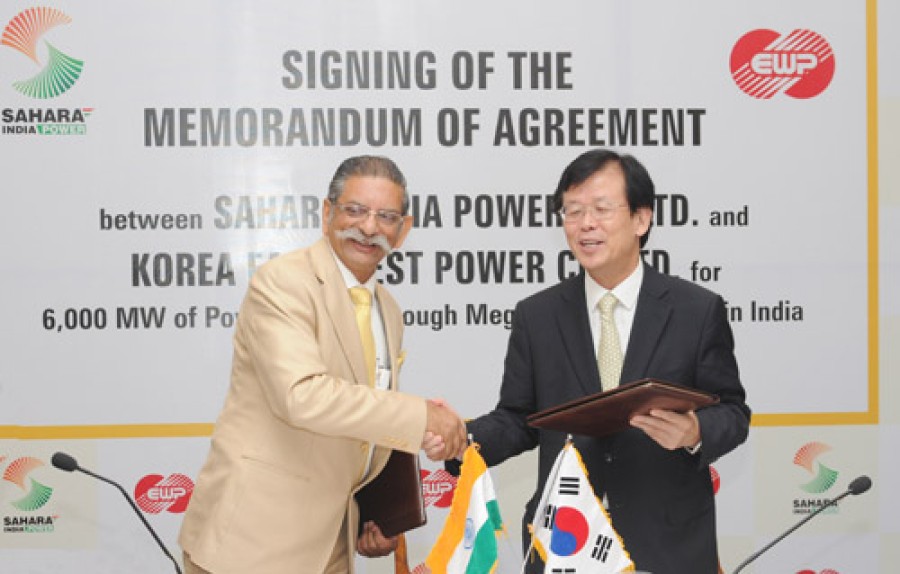 लखनऊ। सहारा इंडिया पावर कॉर्पोरेशन लिमिटेड, कोरिया सरकार के उपक्रम, कोरिया ईस्ट-वेस्ट पावर कंपनी लिमिटेड के सहयोग से भारत में कुल 6000 मेगावाट की क्षमता के मेगा प्रोजेक्ट्स स्थापित करेगी। इस उद्देश्य से सहारा इंडिया पावर की ओर से कंपनी के सीईओ अशोक भार्गव और कोरिया ईस्ट-वेस्ट पावर की ओर से कंपनी के अध्यक्ष एवं सीईओ ली गिल ग्यू ने एक एमओयू पर हस्ताक्षर किये। इस प्रकार इन दोनों कंपनियों के मध्य भारत में कुल 6000 मेगावाट की क्षमता वाले अल्ट्रा मेगा पावर प्रोजेक्ट्स और अन्य संबंधित अवसरों पर संयुक्त रूप से टैरिफ आधारित बोली लगाने के लिए समझौता हुआ है।