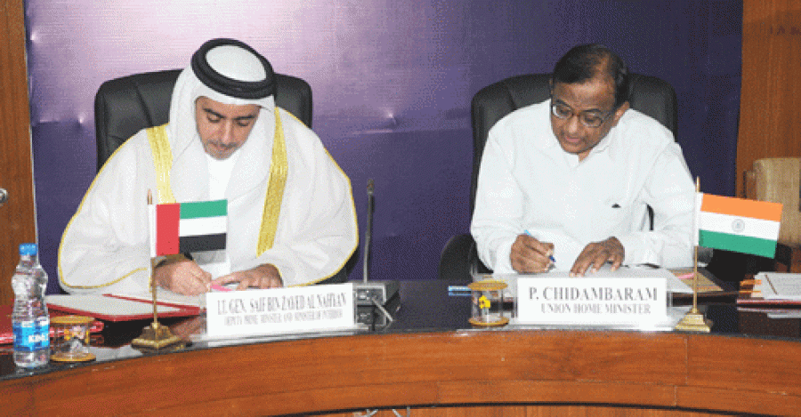 नई दिल्ली। संयुक्त अरब अमीरात के उप प्रधान मंत्री और गृह मंत्री लेफ्टिनेंट जनरल शेख सैफ बिन ज़ायद-अल नाह्यान तथा भारत सरकार के केंद्रीय गृह मंत्री पी चिदंबरम ने सुरक्षा सहयोग और सज़ायाफ्ता लोगों के स्थानांतरण के समझौतों पर हस्ताक्षर किए। उन्होंने दोनों देशों के बीच द्विपक्षीय सुरक्षा सहयोग से संबंधित मुद्दों पर चर्चा के लिए आज यहां एक बैठक की।