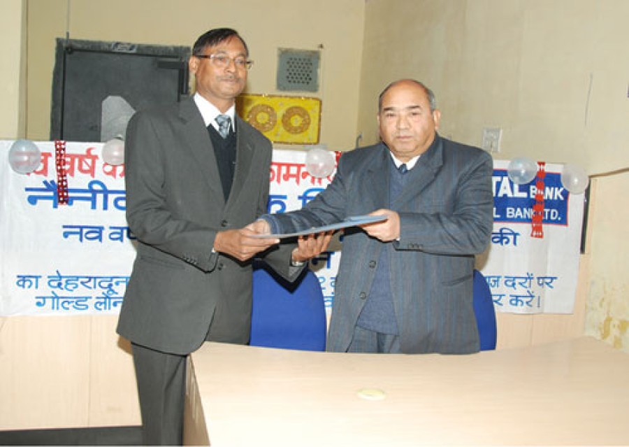 देहरादून। नैनीताल बैंक में नव वर्ष के अवसर पर गोल्ड लोन स्कीम का शुभारंभ किया गया। योजना का शुभारंभ करते हुए बैंक के एसोसिएट वाईस प्रेसिडेंट (गढ़वाल क्षेत्र) एके शाह ने बताया कि यह योजना बैंक की केवल दो ही शाखाओं में शुरू की गई है, जिसमें कुमायूं क्षेत्र में हल्द्वानी शाखा और दूसरी गढ़वाल क्षेत्र में सहारनपुर रोड स्थित देहरादून शाखा शामिल है। एके शाह ने इस योजना का अधिक से अधिक ग्राहकों से लाभ उठाने की अपील की है। सहारनपुर रोड देहरादून शाखा प्रबंधक संतोष कुमार ने योजना के बारे में ग्राहकों को जानकारी दी। इस अवसर पर वाईसी पांडेय, वरिष्ठ शाखा प्रबंधक राजपुर रोड शाखा देहरादून, शाखा प्रबंधक हरिद्वार रोड देहरादून एससी जोशी एवं ग्राहक उपस्थित थे।