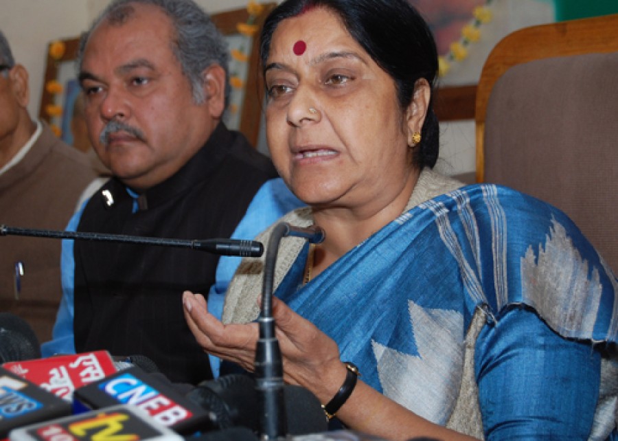 लखनऊ। भारतीय जनता पार्टी की वरिष्ठ नेत्री एवं लोकसभा में नेता प्रतिपक्ष सुषमा स्वराज ने कहा है कि उत्तर प्रदेश में चुनाव प्रचार करने और तीन चरणों के मतदान संपन्न होने के बाद यह साफ हो गया है कि उत्तर प्रदेश का चुनाव परिणाम सभी सर्वेक्षणों के विपरीत होगा। प्रदेश मुख्यालय पर पत्रकारों से वार्ता करते हुए उन्होंने दावा किया कि भारतीय जनता पार्टी उत्तर प्रदेश में सरकार बनाने की ओर बढ़ रही है।