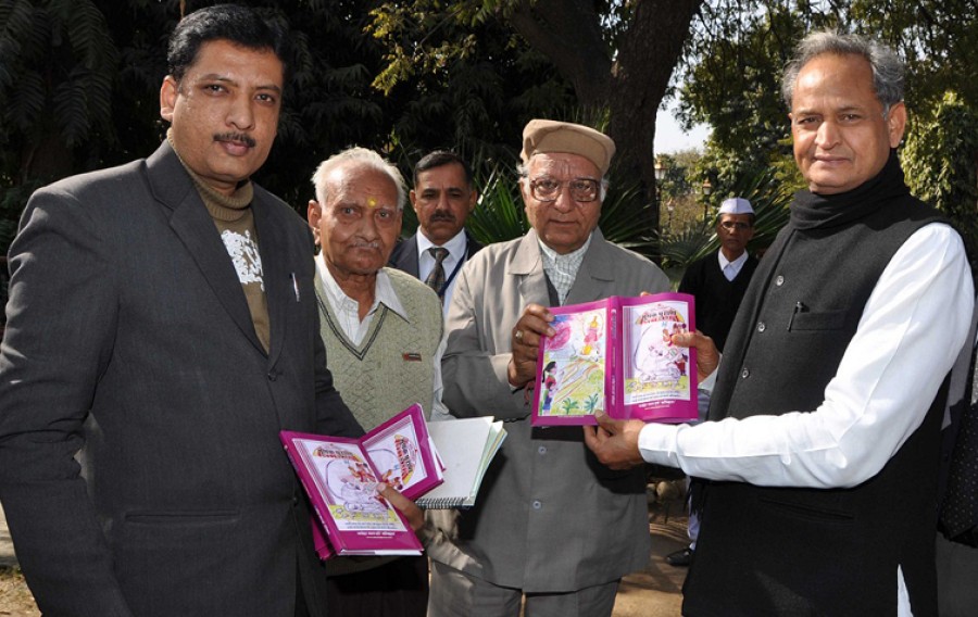 जयपुर। राजस्थान के मुख्यमंत्री अशोक गहलोत से मुख्यमंत्री निवास पर सोमवार को हास्य-व्यंग्य रचनाकार एवं चित्रकार मनोहर लाल हर्ष ‘कविहृदय‘ ने भेंट की और उन्हें अपनी हास्य-व्यंग्य काव्य पुस्तक ‘मूषक पुराण‘ की प्रति भेंट की। बीकानेर के कविहृदय मनोहर लाल हर्ष ने ‘मूषक पुराण‘ में सामाजिक विषमताओं पर हास्य रस की फुहार के साथ व्यंग्य करते हुए 85 कविताओं की रचना की है, साथ ही उन्होंने इसके कवर सहित इसमें प्रकाशित रंगीन चित्रों को भी स्वयं बनाया है। हर्ष ने मूल रूप से 44 वर्षों पूर्व इस हास्य-व्यंग्य की रचना की। उन्होंने इसके बाद 2007 में अपने हनुमानगढ़ और 2011 में जयपुर प्रवास के दौरान लिखी रचनाओं को ‘मूषक पुराण‘ में शामिल किया है।
