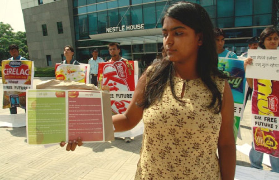 ग्रीनपीस इंडिया ने अगस्त 2009 में उपभोक्ताओं के लिए एक ऐसी गाइड जारी की हुई है जिसमें भारतीय नामी गिरामी ब्रांडों के खाद्य उत्पादों को जेनेटिक्ली माडीफाइड (जीएम) खाद्यान्न के आधार पर वर्गीकृत किया गया है। इसमें नेस्ले को लाल सूची में रखा गया क्योंकि वह जीएम खाद्यान्न के उपयोग की पक्षधर है। इसके ठीक बाद साइबर एक्टिविस्टों के दबाव में आकर नेस्ले ने ग्रीनपीस के सवालों का जवाब देते हुए यह कहा कि वर्तमान समय में उनके उत्पादों में किसी तरह का कोई जीएम तत्व मौजूद नहीं है क्योंकि भारतीय कानून व्यवस्था के तहत इनका उपयोग वर्जित है। नेस्ले ने भविष्य में अपनायी जाने वाली नीति ने बारे में कुछ कहे जाने से यह कहते हुए इंकार किया कि यह दूर की बात है।