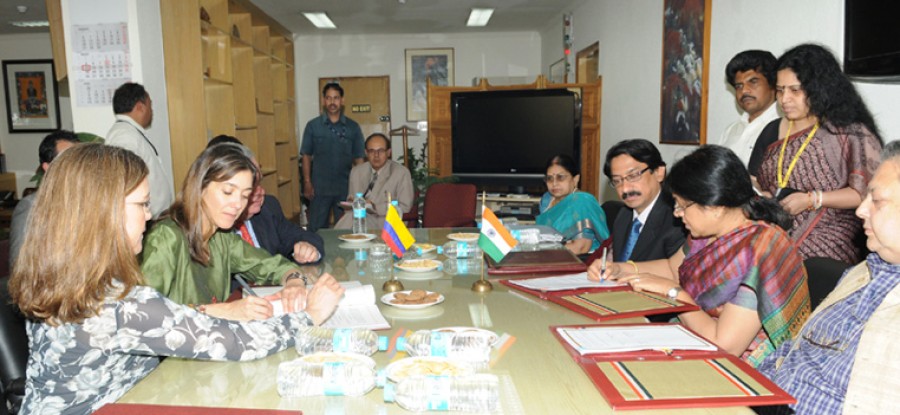नई दिल्ली। भारत और कोलंबिया ने सोमवार को वर्ष 2012-16 के लिए एक सांस्कृतिक आदान-प्रदान कार्यक्रम (सीईपी) पर हस्ताक्षर किये हैं। भारत की ओर सांस्कृतिक सचिव संगीता गैराला और कोलंबिया की ओर से विदेश मामलों (बहुपक्षीय) की उपमंत्री पट्टी लोनडोनो जरामिलो ने इस सीईपी पर हस्ताक्षर किये। सीईपी पर किये गये हस्ताक्षर दोनो सरकारों के बीच 22 मई 1974 को बागोटा में हस्ताक्षरित सांस्कृतिक समझौते में तय प्रावधानों के अनुरूप हैं।