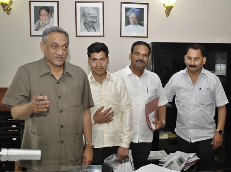 देहरादून। मुख्यमंत्री विजय बहुगुणा ने शुक्रवार को सचिवालय में वर्ष 2003 में राष्ट्रीय वीरता पुरस्कार से सम्मानित हरीश राणा को सम्मानित किया। मुख्यमंत्री ने बालक हरीश राणा को बधाई दी तथा उसकी वीरता को सराहा। मुख्यमंत्री ने कहा कि राज्य सरकार ऐसे वीर बालकों को हर संभव सहयोग देगी। ज्ञातव्य है कि ग्राम तिनवाल, पट्टी भदूरा प्रतापनगर निवासी 13 वर्षीय हरीश राणा ने अपनी वीरता का परिचय देते हुए बाघ के साथ संघर्ष करते हुए एक की जान बचाई थी, जिसके लिए वर्ष 2003 में भारत सरकार ने राष्ट्रीय वीरता पुरस्कार से सम्मानित किया था। इस अवसर विधायक प्रतापनगर विक्रम सिंह नेगी भी उपस्थित थे।