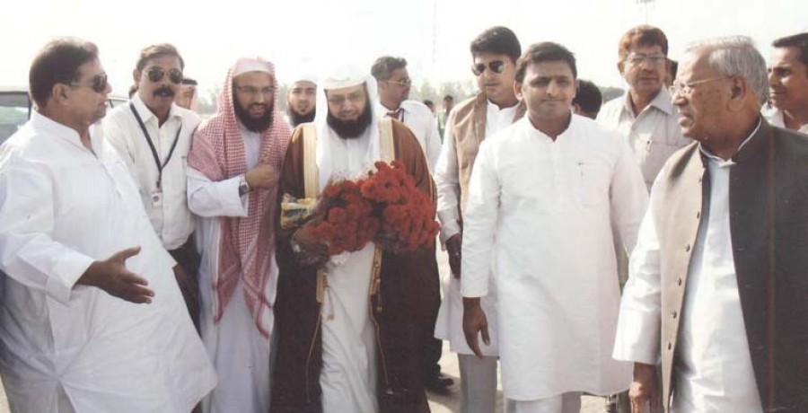 लखनऊ। उत्तर प्रदेश के मुख्यमंत्री अखिलेश यादव ने मंगलवार अमौसी एयरपोर्ट पर सऊदी अरब स्थित काबा शरीफ के इमाम मौलाना शेख खालिद बिन अली अल ग़ामिदी का स्वागत किया। इस अवसर पर उत्तर प्रदेश के कैबिनेट मंत्री अहमद हसन, डॉ वकार अहमद शाह तथा राज्यमंत्री अभिषेक मिश्रा भी मुख्यमंत्री के साथ मौजूद थे।