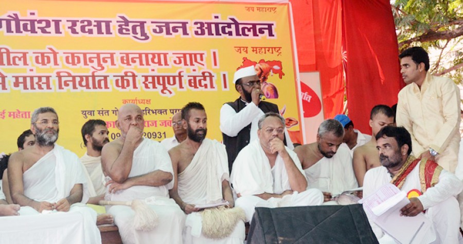 मैं गौरक्षक की नामवाली टोपियां, गले में पंचरंगी पट्टे और हाथो में पंचरंगी झंडो के साथ अहिंसा परमो धर्मः की जयकार करते हुए एवं गाय काटनेवालों को सजा करो-सजा करो, जो गौवंश रक्षा की बात करेगा, वही महाराष्ट्र में राज करेगा आदि अनेक नारों से से मुंबई में गूंज हुई। इस आंदोलन में राष्ट्रीय गौवंश रक्षा समिति, वर्धमान परिवार, समस्त महाजन, अहिंसा संघ, मुंबई के सभी जैन संघ, विश्व हिंदू परिषद, अखिल भारतीय गौरक्षक सेवादल आदि संस्थाओं ने भाग लिया। विधायक मंगल प्रभात लोढ़ा ने संपूर्ण गौवंश हत्या प्रतिबंध बिल की मांग की। सभा के समर्थन में हीरा बाजार, कपड़ा बाजार, नागदेवी मार्केट, स्टील मार्केट, मेटल मार्केट, इमिटेशन मार्केट, झवेरी बाज़ार, दाना बाज़ार आदि कई मार्केट बंद रहे और व्यापारियों ने बड़ी संख्या में पधारकर सभा को सफल बनाया।