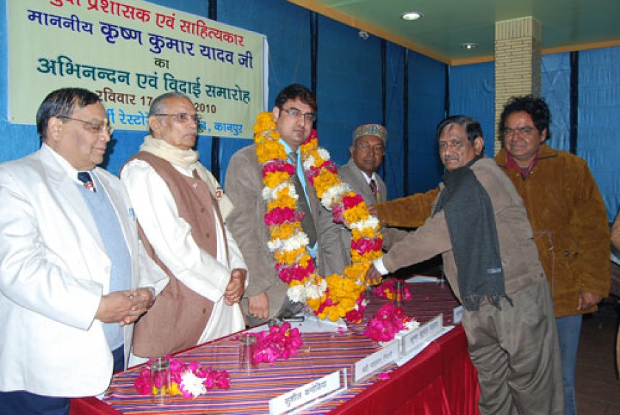 कानपुर।कानपुर मण्डल के प्रवर डाक अधीक्षक, चीफ पोस्टमास्टर एवं प्रवर रेलवे डाक अधीक्षक पदों का दायित्व निर्वहन कर चुके कृष्ण कुमार यादव को यहां डर्बी रेस्टोरेंट में आयोजित एक भव्य समारोह में भावभीनी विदाई दी गई। केके यादव की निदेशक पद पर प्रोन्नति हो गई है और वे अण्डमान-निकोबार द्वीप समूह के निदेशक डाक सेवाएं हो गए हैं। केंद्र सरकार के एक अधिकारी के साथ-साथ साहित्यकार के रूप में चर्चित केके यादव की विदाई पर नगर के तमाम प्रमुख साहित्यकार, बुद्विजीवी, शिक्षाविद, पत्रकार, अधिकारीगण एवं डाक विभाग के तमाम कर्मचारी मौजूद थे।