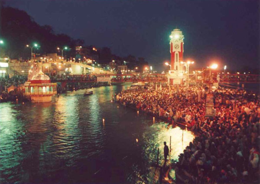 हरिद्वार। कुंभ! प्रयाग, हरिद्वार, नासिक और उज्जैन-भारत में कुंभ के ये चार पवित्र स्थल हैं, जहां हर बारह वर्ष के अंतर से लगने वाला स्नान दान और मोक्ष का यह सर्वश्रेष्ठ ग्रहयोग आता है। ब्रह्माण्ड की अलौकिक शक्ति भगवान शिव के आसन हिमालय की तलहटी में बसी विश्व विख्यात पवित्र नगरी हरिद्वार में मकर संक्रांति के शुभ मुहूर्त के साथ यह योग शुरू हो चुका है। इस योग में करीब दस लाख लोगों ने डुबकी लगाकर अपने मोक्ष और पुण्य फलों की कामना की। हरिद्वार में कुंभ पर्व का जो महत्व है उसका वर्णन पुराणों में बहुत विस्तार से है। जिस समय गुरू कुंभ राशि पर और सूर्य मेष राशि पर हो तब हरिद्वार में कुंभ पर्व आता है। हरिद्वार सहित अन्य स्थानों पर भी कुंभ के ग्रहयोग का विलक्षण वर्णन है।