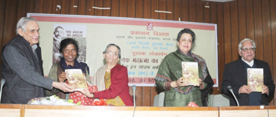 नई दिल्ली। प्रगति मैदान में लगे दिल्ली पुस्तक मेले में बुधवार को महात्मा गांधी पर हिंदी में अनुवादित पुस्तक 'एक महात्मा का अभ्युदय' का डॉ सुरेश शर्मा ने विमोचन किया। डॉ सुरेश शर्मा जाने-माने विद्वान और सेन्टर फॉर स्टडी ऑफ डवलपिंग सोसाइटीज़ के वरिष्ठ फैलो हैं। मूल रूप से अंग्रेजी भाषा में लिखी स्वर्गीय जेएन उप्पल की पुस्तक का यह हिन्दी अनुवाद है। पुस्तक का अनुवाद साहित्य जगत के जाने-माने विद्वान देवेन्द्र कुमार ने किया है। इसे भारत सरकार के प्रकाशन विभाग ने प्रकाशित किया है।