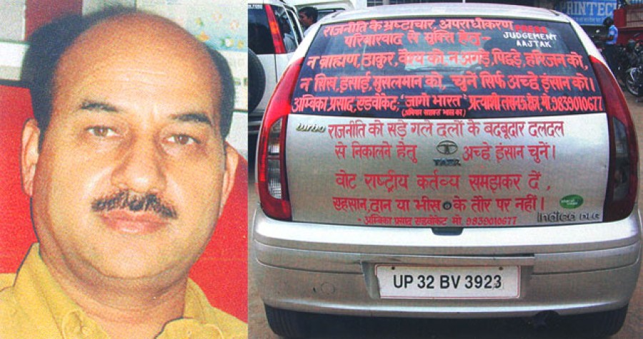 अंबिका प्रसाद ने अपने इश्तिहार में अनुरोध किया है कि उनका पर्चा सौ लोगों को अवश्य पढ़ाया जाए। इस तरह मैं वह एक चना हूं जो हो सकता है अभी भाड़ मैं फोड़ सकूं लेकिन आने वाले समय में हजारों चने जरूर पैदा करूंगा। उन्होंने वादे किए हैं कि यदि वे चुनाव जीते तो वह सब करके दिखाएंगे जो बासठ वर्षों में भी नहीं हुआ। तब फिर राजनीति में अच्छे लोग ही आएंगे। अंबिका प्रसाद लखनऊ में वकालत करते हैं और लखनऊ खंडपीठ में एक समाज से भी अधिवक्ता के रूप में अपनी जिम्मेदारियां निभाते हैं। पत्रकारिता में भी सक्रिय हैं और जजमेंट आज तक नाम के समाचार पत्र के संपादक हैं। वे लखनऊ में केबिल सेवा उपभोक्ता संरक्षण समिति के भी अध्यक्ष हैं और जुडीशियल सोशल सर्विस के संयोजक हैं। उन्हें उम्मीद है कि वे जीतेंगे। उनका यह भी कहना है कि राजनीति में गंदगी के खिलाफ उनका अभियान रूकेगा नहीं बल्कि चुनाव बाद भी जारी रहेगा। वे चाहते हैं कि चुनाव को धन-बल से मुक्ति मिले और लोकतंत्र मजबूत हो।