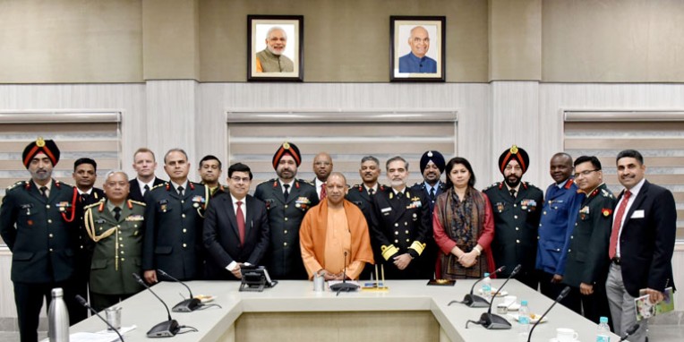 लखनऊ। मुख्यमंत्री योगी आदित्यनाथ से लखनऊ में उनके सरकारी आवास पर उत्तर प्रदेश के सामाजिक और राजनैतिक अध्ययन के संदर्भ में रियर एडमिरल डीएम सूडान के नेतृत्व में राष्ट्रीय रक्षा महाविद्यालय के 16 सदस्यीय दल ने मुलाकात की।