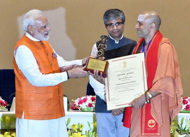 नई दिल्ली। प्रधानमंत्री नरेंद्र मोदी ने 30 अगस्त 2019 को नई दिल्ली में एक समारोह में योग के संवर्धन और विकास में उत्कृष्ट योगदान के लिए प्रधानमंत्री योग पुरस्कार प्रदान किए। इस अवसर पर आयुष मंत्रालय के सचिव वैद्य राजेश कोटेचा भी उपस्थित थे।