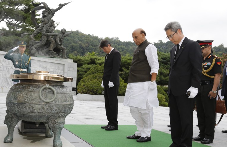 सियोल। भारत के रक्षामंत्री राजनाथ सिंह ने 5 सितंबर 2019 को सियोल में राष्ट्रीय कब्रिस्तान में कोरिया गणराज्य के शहीदों को श्रद्धांजलि अर्पित की।