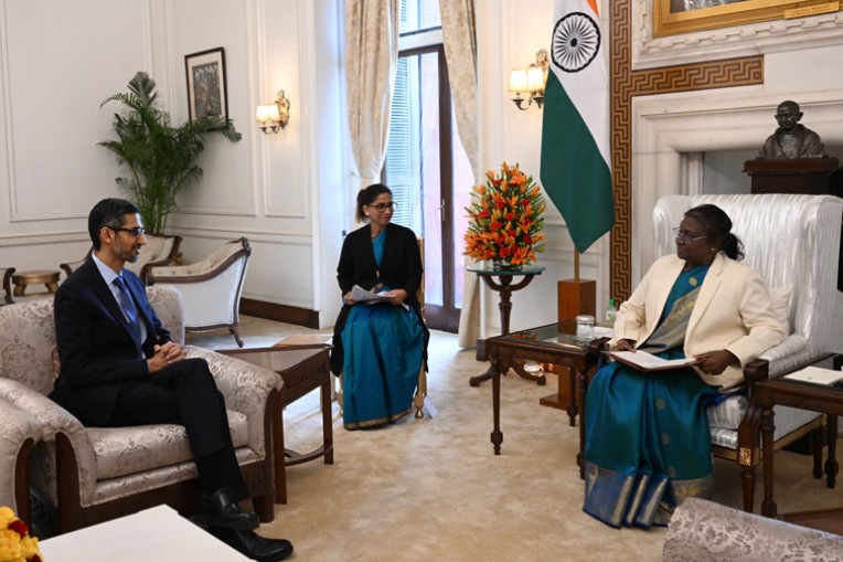 नई दिल्ली। राष्ट्रपति द्रौपदी मुर्मू से गूगल और अल्फाबेट के सीईओ सुंदर पिचाई ने राष्ट्रपति भवन में मुलाकात की। राष्ट्रपति ने पद्मभूषण से सम्मानित सुंदर पिचाई को भारतीय प्रतिभा और ज्ञान का प्रतीक बताया और उनसे भारत में सार्वभौमिक डिजिटल साक्षरता केलिए काम करने का आग्रह किया।