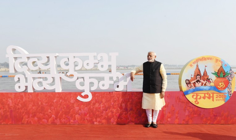 प्रयागराज। प्रयागराज में दिव्य कुंभ भव्य कुंभ सेल्फी प्वाइंट पर प्रधानमंत्री नरेंद्र मोदी।